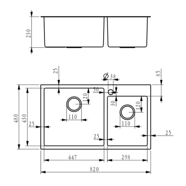 Double Bowl (Kitchen Sink) (3mm Thickness Top) (Honeycomb Nano Black Coating)