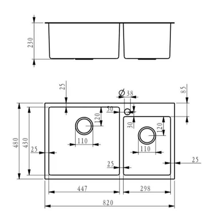 Double Bowl (Kitchen Sink) (3mm Thickness Top) (Honeycomb Nano Black Coating)