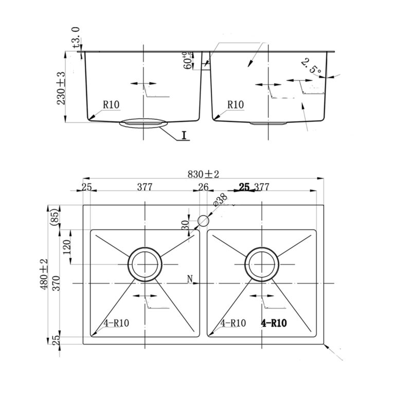 Double Equal Bowl (Kitchen Sink) (3mm Thickness Top)