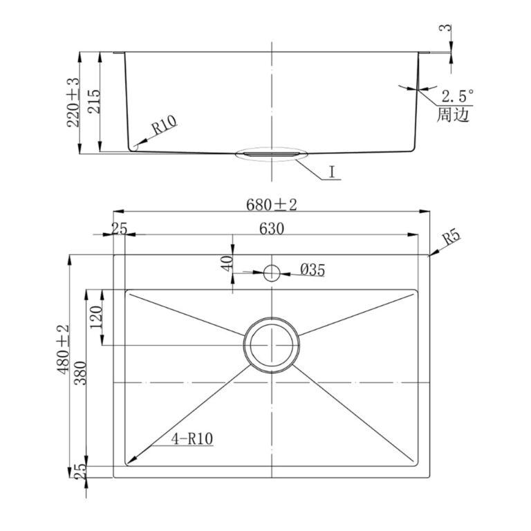 Single Bowl (Kitchen Sink) (3mm Thickness Top) (Honeycomb Nano Coating)