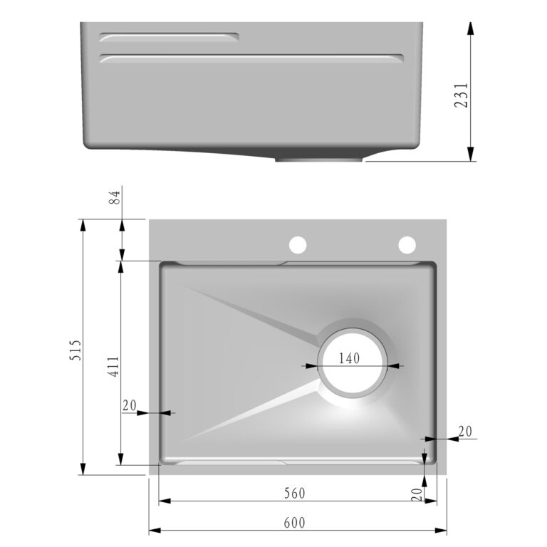 Single Bowl (Kitchen Sink) (3mm Thickness Top) (Honeycomb Nano Coating)