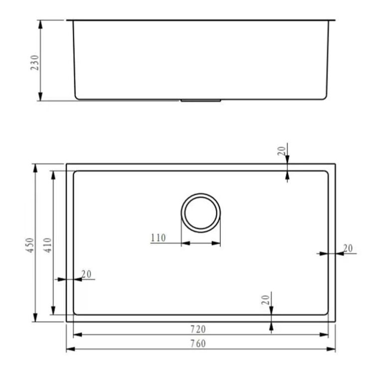 Single Bowl (Kitchen Sink) (3mm Thickness Top) (Honeycomb Nano Coating)